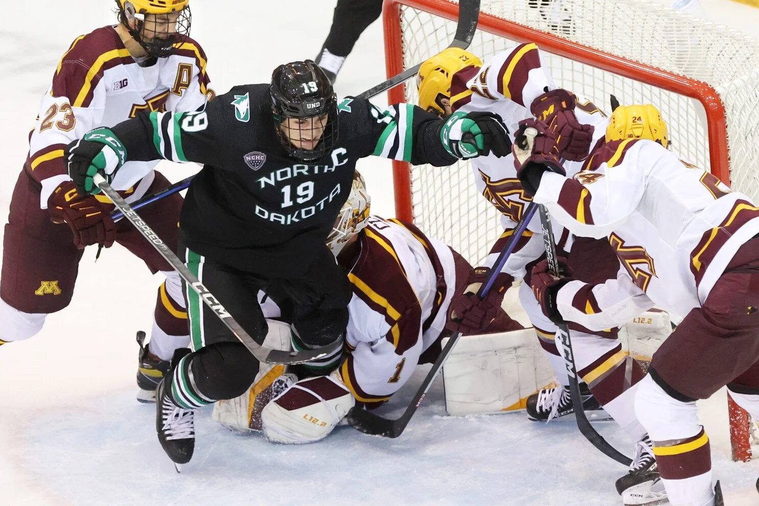 As you can tell, fans go back-and-forth choosing the stats they say makes their team look better than the other. That’s true for the games played too. Minnesota has arguably the two most iconic moments in the history of the rivalry: Neal Broten’s diving goal to win the 1979 NCAA championship game and Justin Holl’s goal with 0.6 seconds remaining to get a 2-1 win in the Frozen Four. North Dakota also has a Frozen Four win in this rivalry, beating Minnesota 4-2 in 2005, but each team would eventually lose in the national championship game in both seasons.